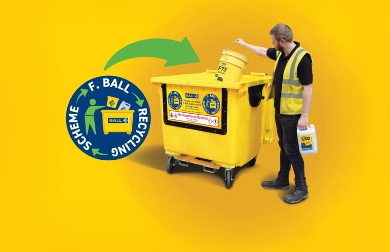 All F. Ball plastic buckets and the company’s five and 20 litre plastic bottles used for liquids, primers and tackifiers can be recycled via the scheme, with much of the packaging itself manufactured from recycled materials.